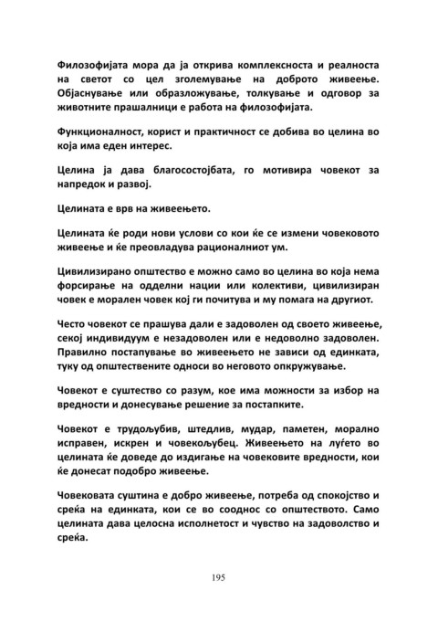 целината ќе доведе до издигање на човековите вредности, кои