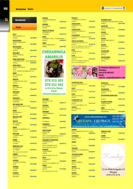 ПРИЛЕП 048/413983 РОЗА ФЛОРА 2004 КРАЛИ МАРКО 128 СКОПЈЕ 02/2469956 АМБАСАДОР БУЛ.К.МИСИРКОВ 2 02/3235411